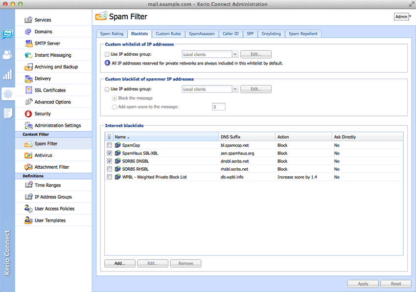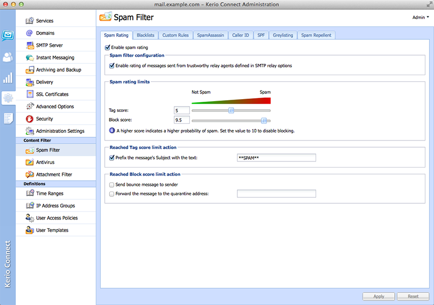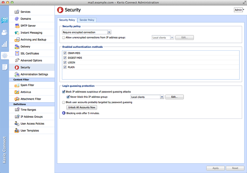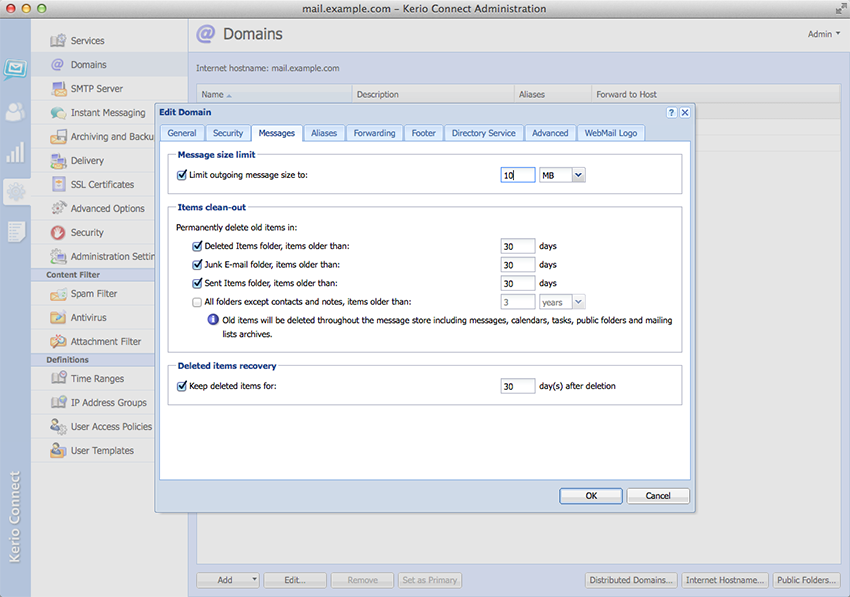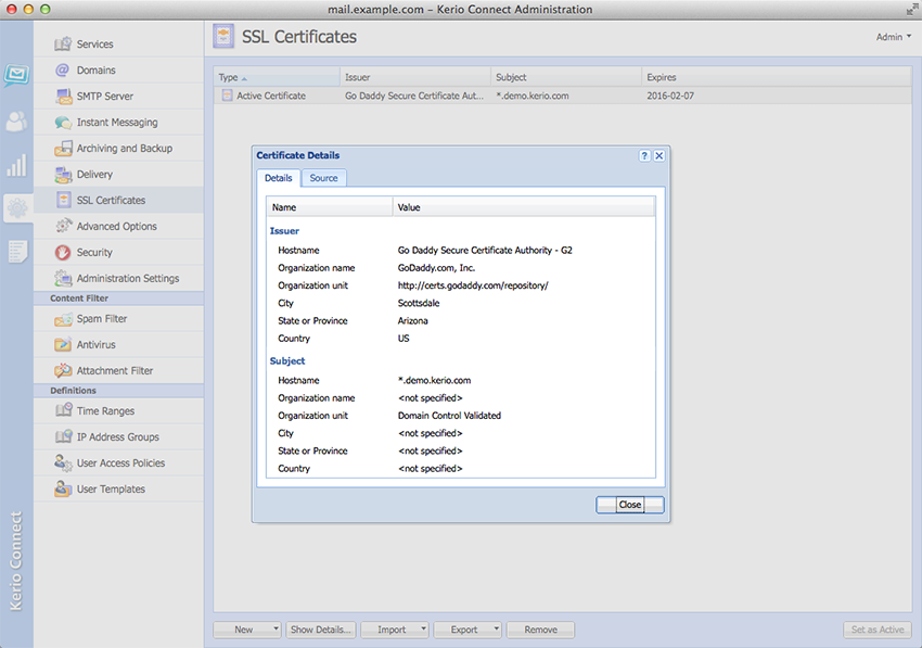 SCREENSHOT GALLERYWe’ve built powerful security into Kerio Connect. You’re protected against hacking and malicious attacks with SSL encryption, S/MIME, anti-spam and antivirus tools, and more. Automated backup with granular restore options ensure quick and easy recovery from all types of disasters. Server-wide archiving prevents data loss and helps organizations to comply with legal requirements for email retention.